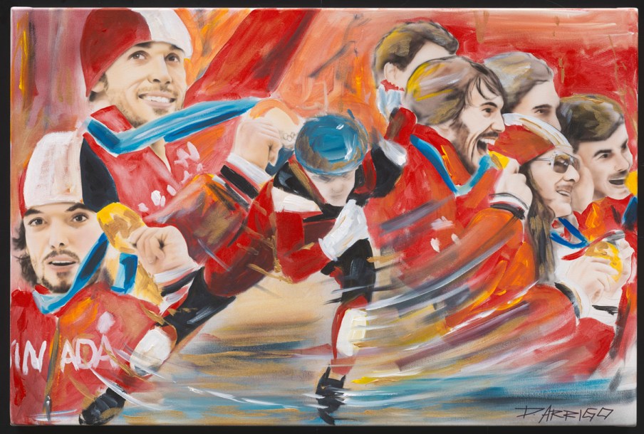 The paintings embody the spirit of the 2010 Games and represent a visual daily diary of Canada’s podium days last February. Arrigo has painted professionally for 20 years and has been featured at such sport events as the Olympic Games, the U.S. Open and the Super Bowl. (For more on the artist, visit www.darrigoart.com.)