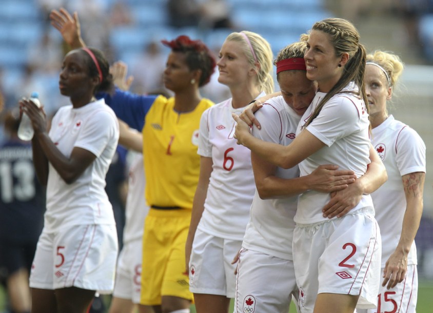 Mellissa Tancredi answered for Canada early in the second half on a pass from Rhian Wilkinson, but that was as close as it would get for the first Canadians in official Olympic action.