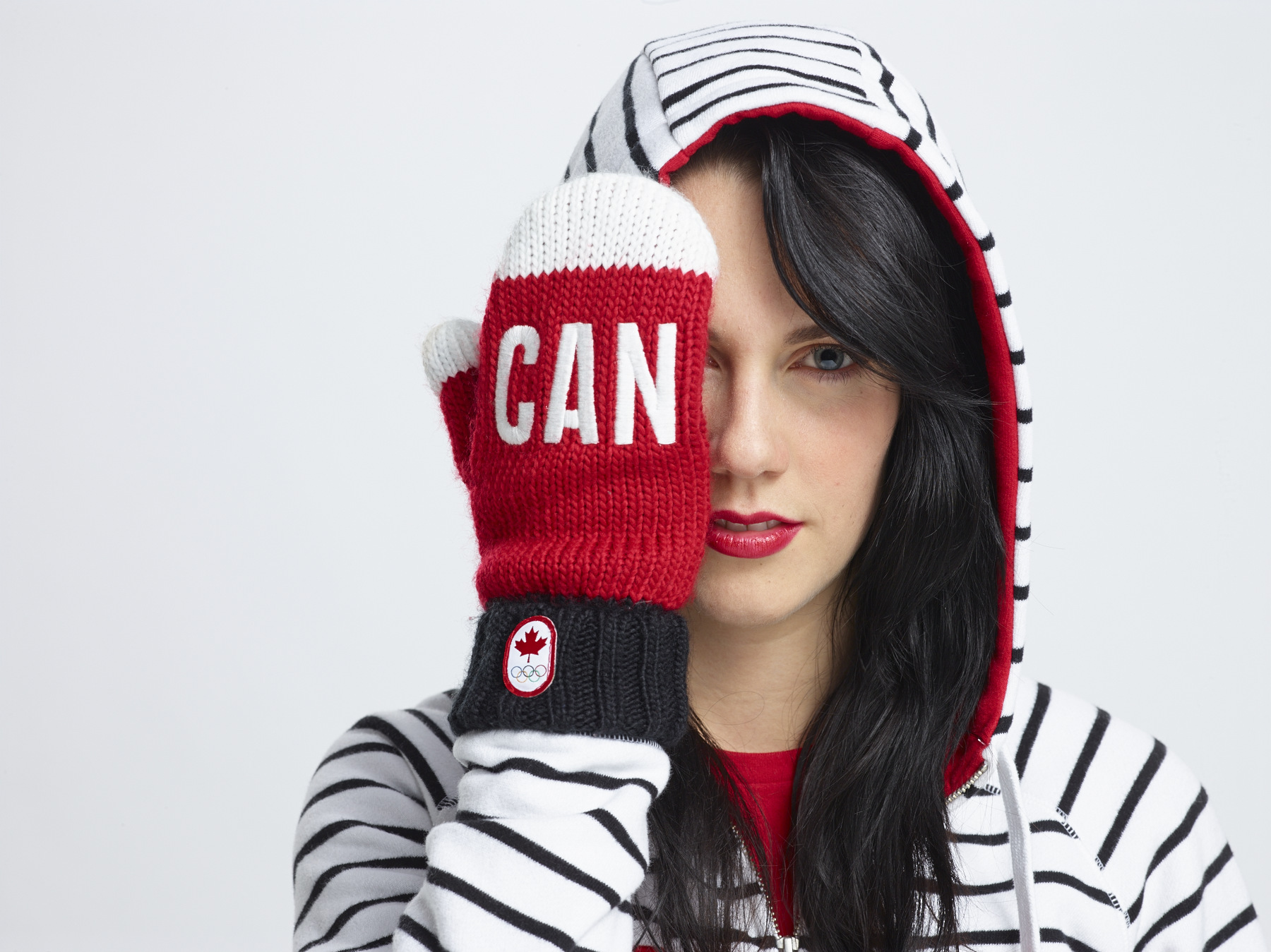 There was even a candy cane striped version last year. The mittens for Sochi 2014 were influenced by HBC’s traditional scarlet point blanket, introducing a black cuff and white fingertips, but keeping it classic with ‘CAN’ on the outside and a white maple leaf on the palm. They are also available from infant to adult sizes for the first time.