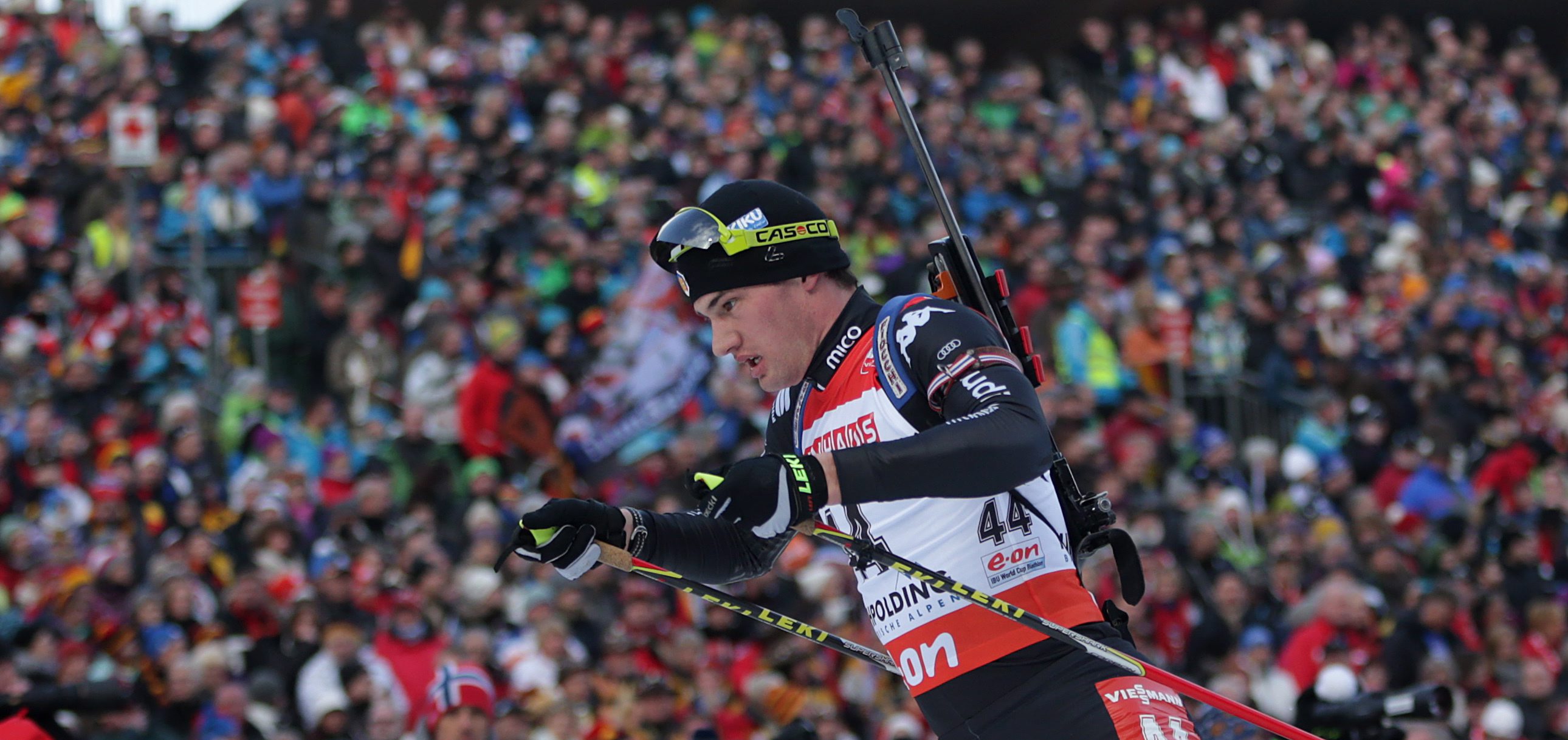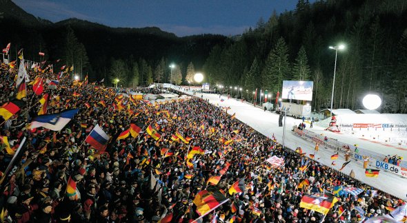 Germans love biathlon. Ruhpolding is the most attended World Cup stop. At the 2012 World Championships there were a total of 240,000 spectators over the eight race days. The stadium itself holds 13,000 people while another 10,000 fans can watch from the track.