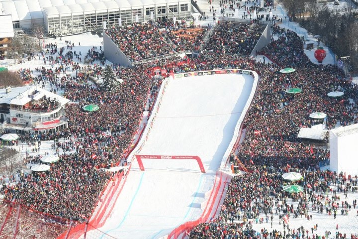 Kitzbühel, possibly the most famous skiing venue in the world, hosted 42,000 spectators for the 2013 edition of the Hahnenkamm downhill on the Streif course.