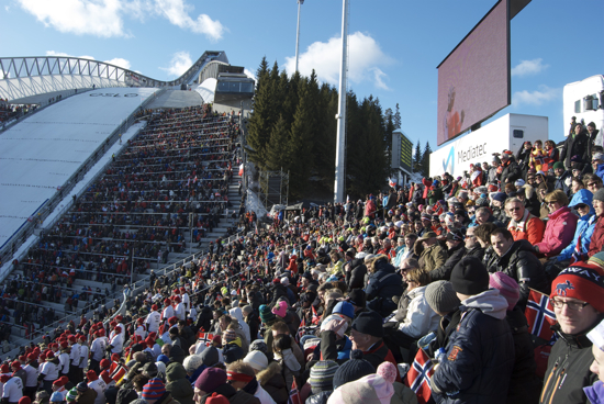 The Norwegian version of National Hockey League’s frozen Winter Classic images come from ski jumping. At the Oslo 1952 Winter Olympics, the ski jumping event had over 130,000 spectators.