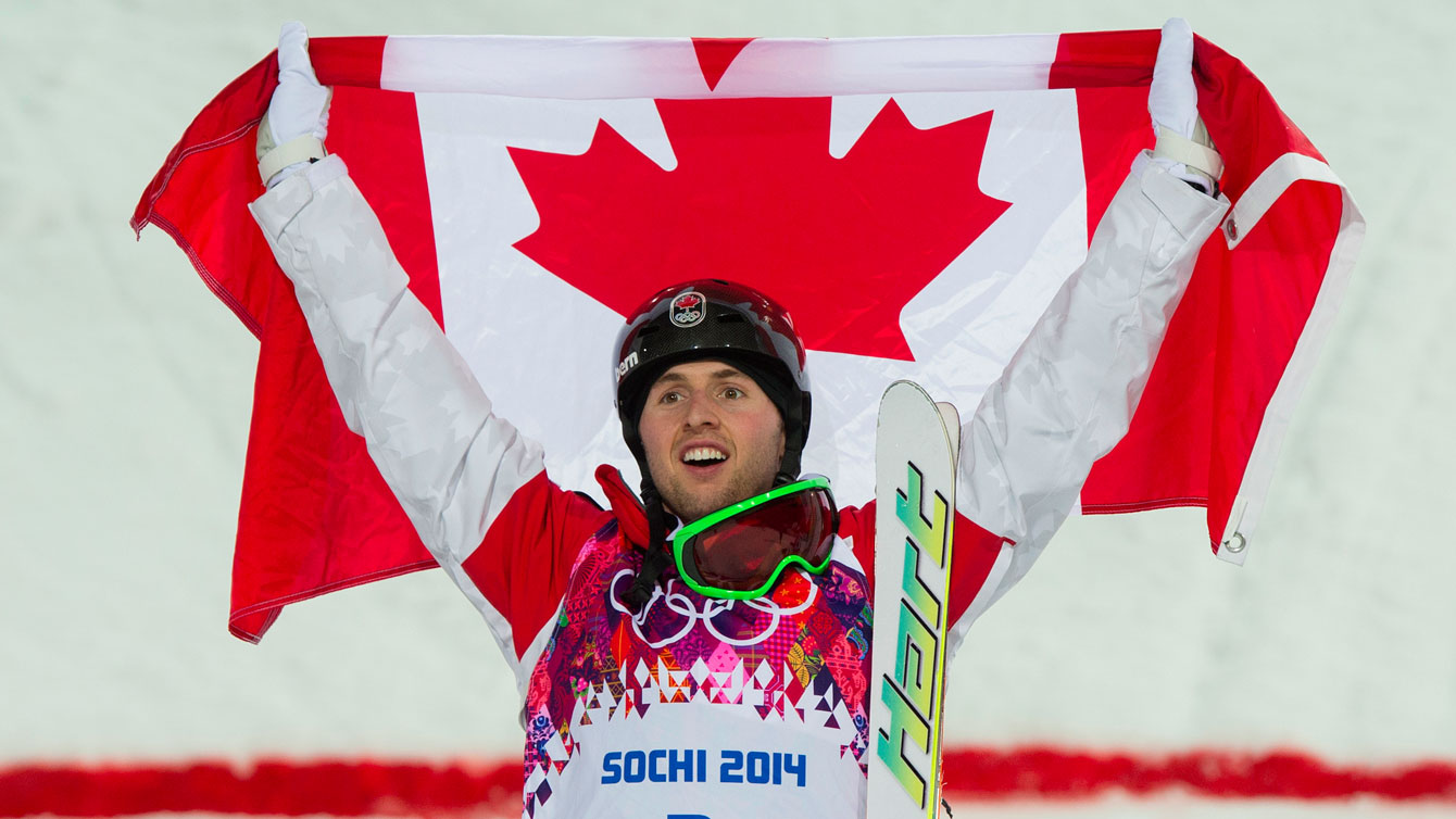 Justine Dufour-Lapointe celebrates her gold medal win at Sochi 2014.