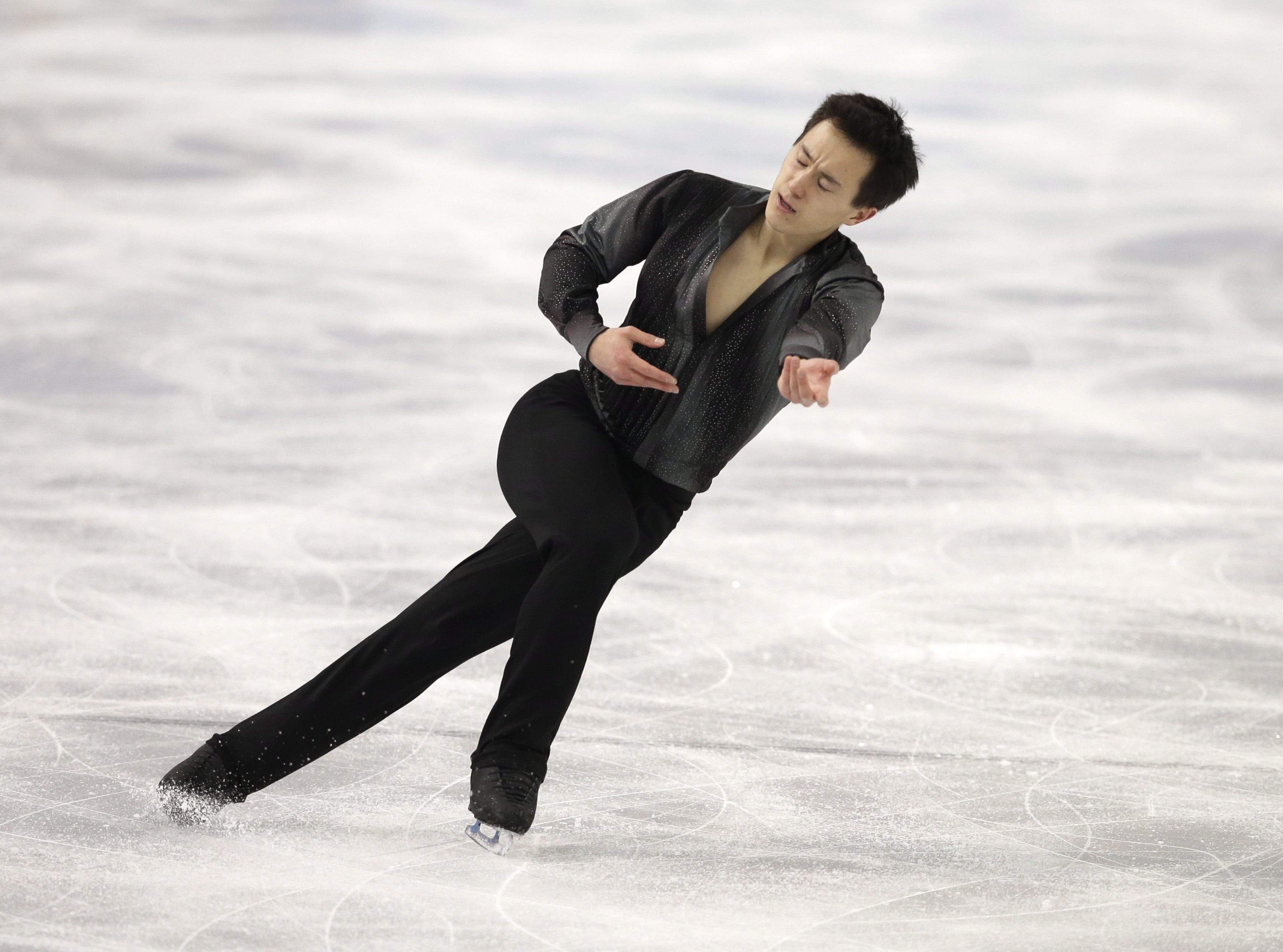 Patrick Chan of Canada competes in the men’s short program figure skating competition at the Iceberg Skating Palace during the 2014 Winter Olympics, Thursday, Feb. 13, 2014, in Sochi, Russia. (AP Photo/Darron Cummings)