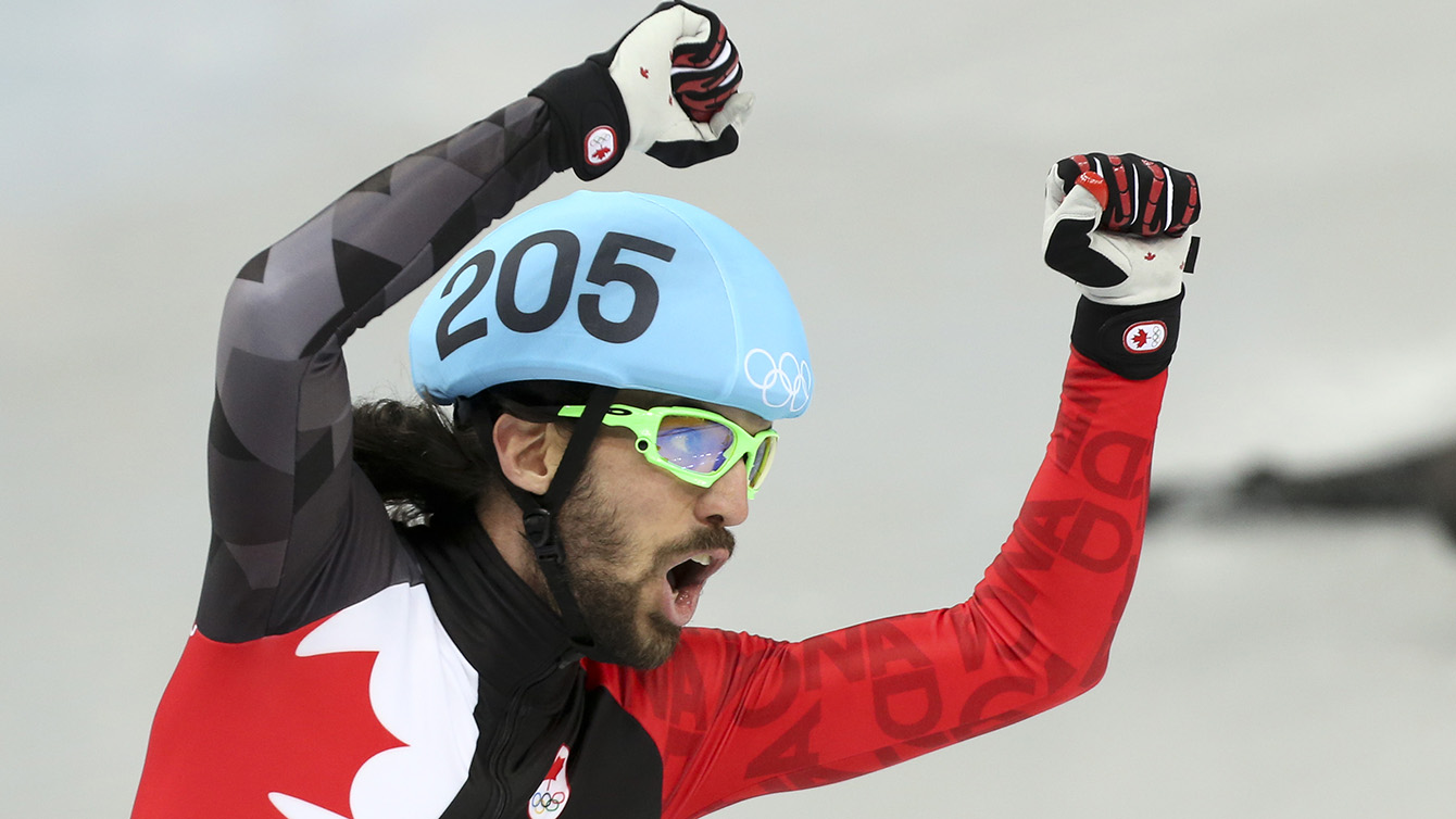François Hamelin falls, ending Canada’s hope for a medal in the relay.