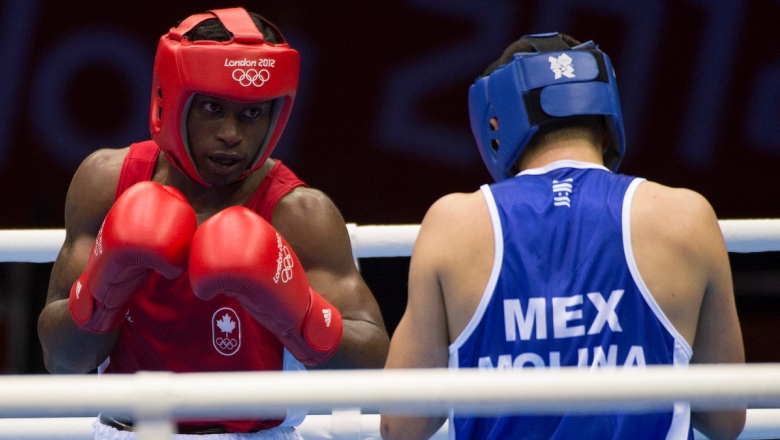 Custio Clayton (left) was Canada’s latest Olympic medal hope, however a controversial decision against a British fighter at London 2012 saw him lose a quarterfinal decision.