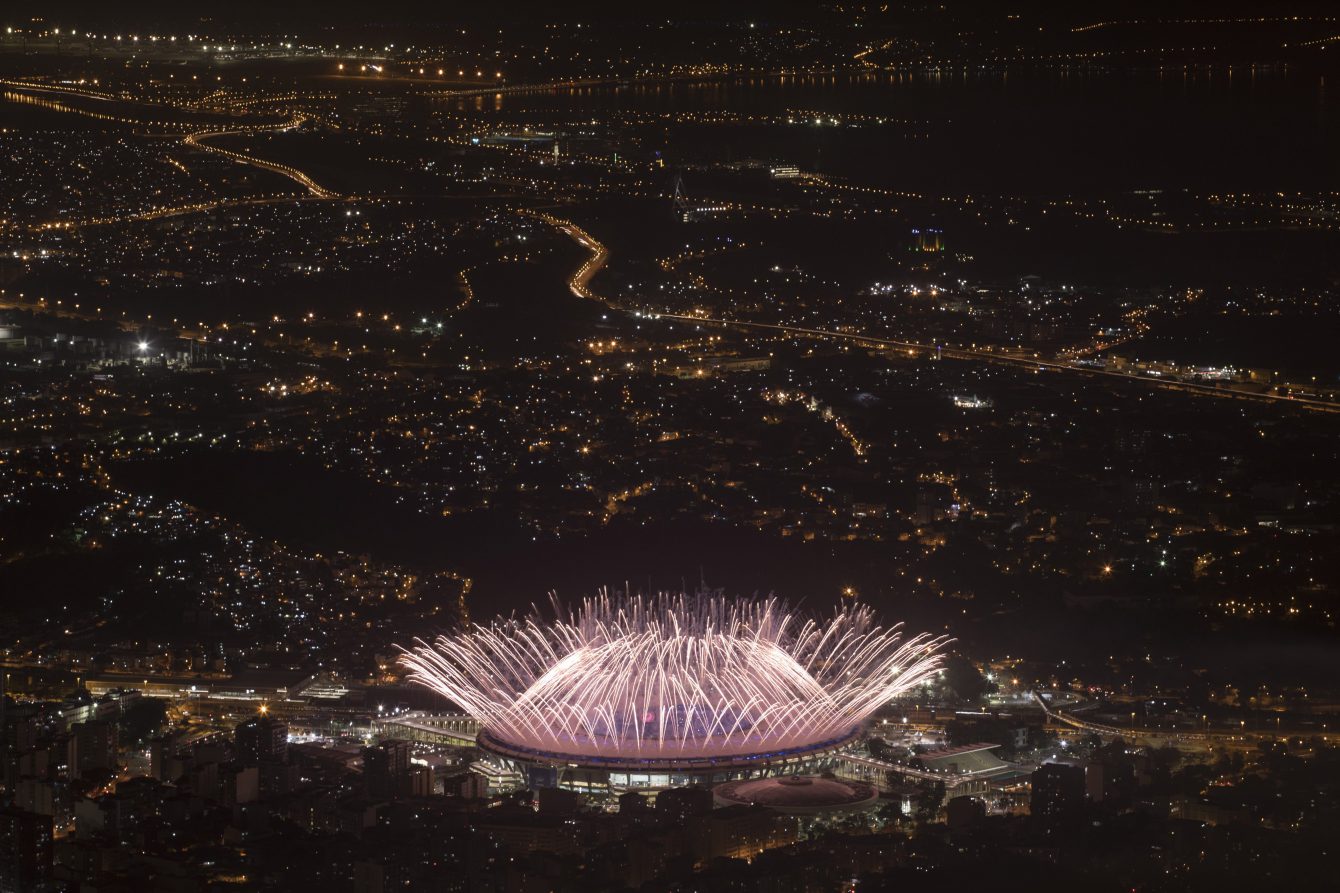 Fireworks explode over Maracana Stadium during the opening ceremony at the 2016 Summer Olympics in Rio de Janeiro, Brazil, Friday, Aug. 5, 2016. (AP Photo/Felipe Dana)