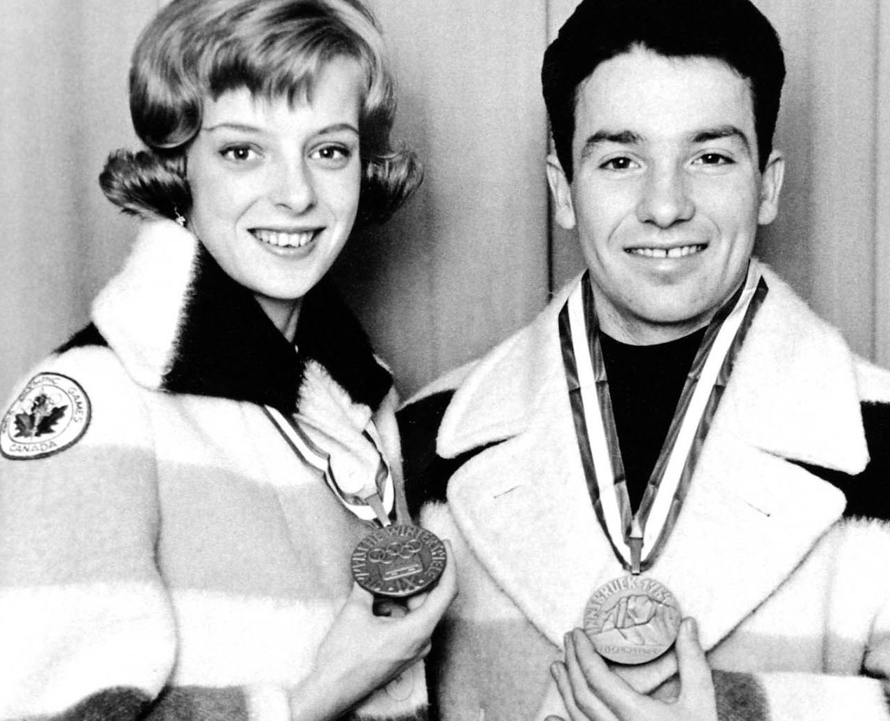Canada’s Debbi Wilkes and Guy Revell celebrate their podium finish in the pairs figure skating event at the Innsbruck 1964 Olympic Winter Games. (CP Photo/COC)