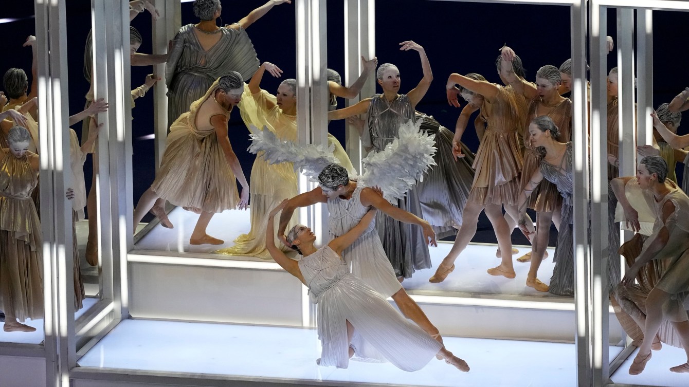 The first scene of the artistic program was a tribute to Italian Beauty, with the myth of Cupid and Psyche brought to life by dancers, who were later joined by other performers looking like neoclassical statues.