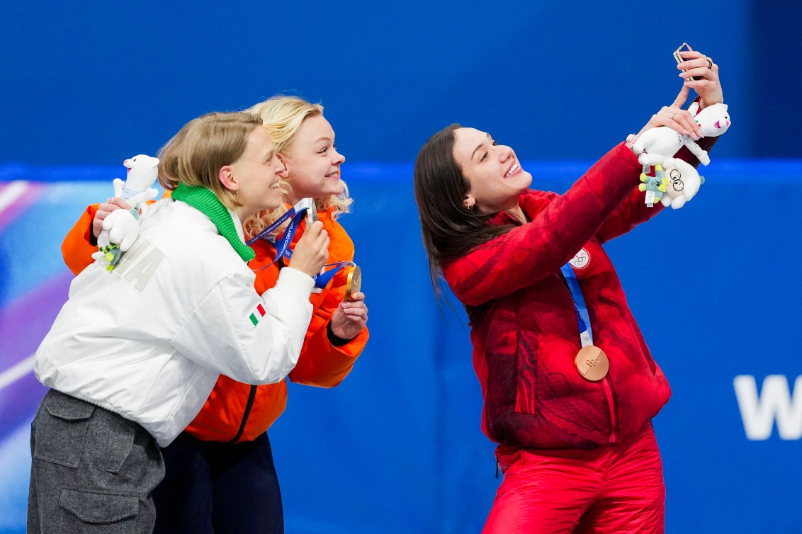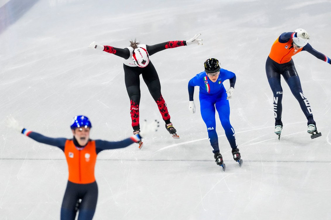 Dutch skater Xandra Velzeboer captured gold after clocking an Olympic record 41.853 in the quarterfinals, and setting a new world record of 41.399 in the semis. Italy’s Arianna Fontana (42.294) took silver, the 13th medal of her Olympic career.
