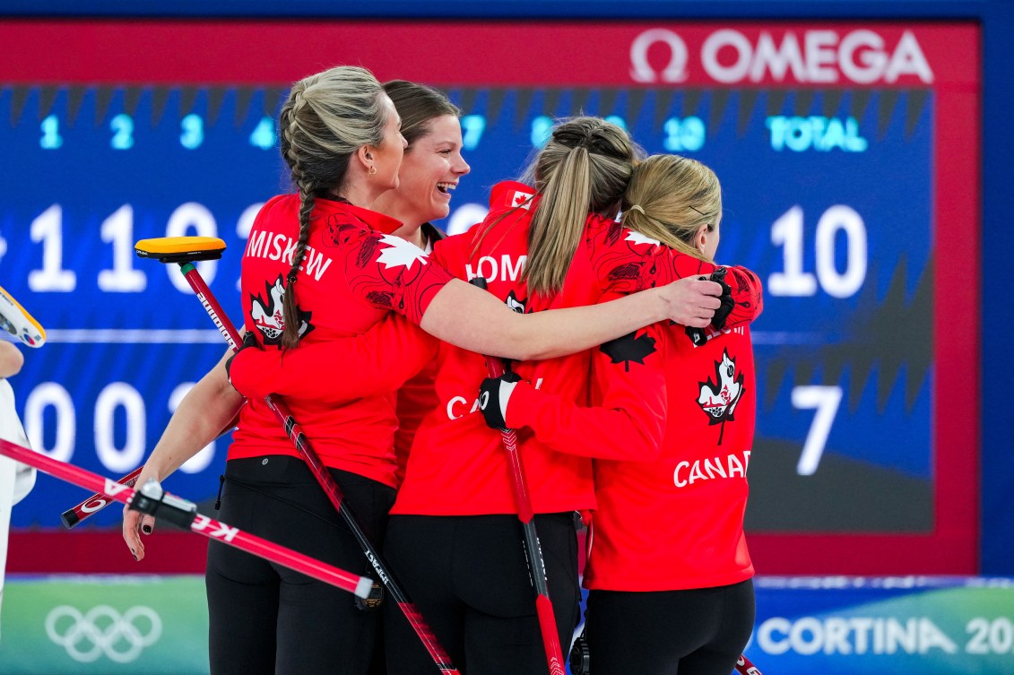 After getting into the playoffs thanks to reeling off five straight wins, Team Homan (6-3) will face Sweden (7-2) in the semifinals of the women’s tournament at 8:05 a.m ET. The Canadians—skip Rachel Homan, third Tracy Fleury, second Emma Miskew, lead Sarah Wilkes—defeated the Swedes 8-6 in their round robin matchup.