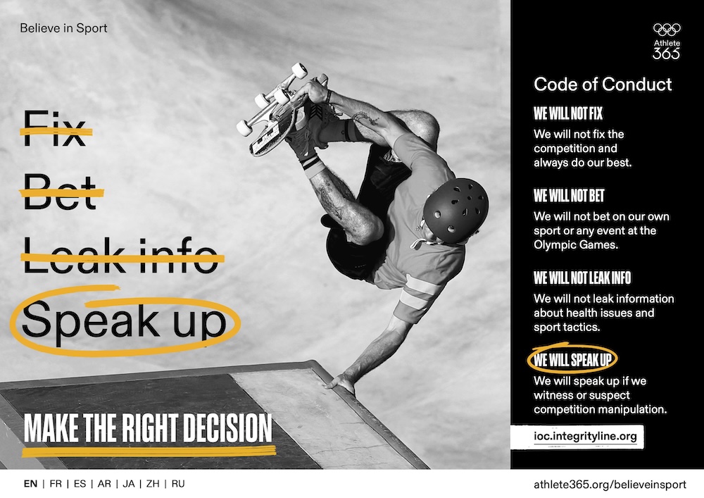 - Report anything suspicious. Participants who are approached to manipulate a competition or notice unusual behaviour, must report it immediately to the IOC or Sport Integrity Canada.