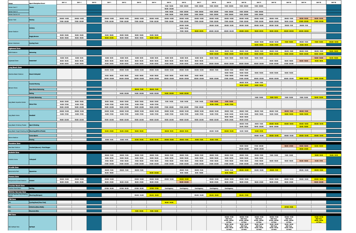 Olympic Schedule – LA 2028