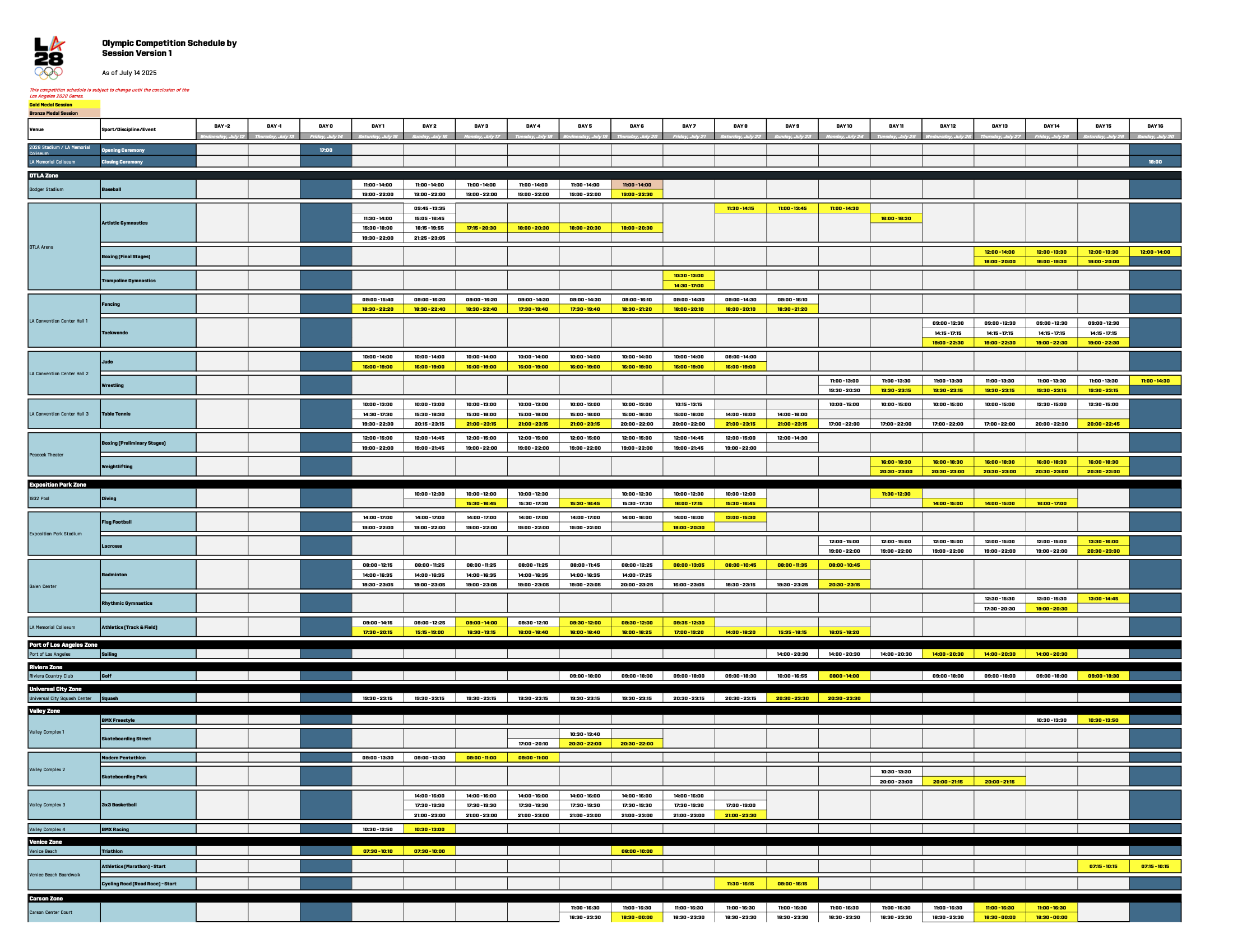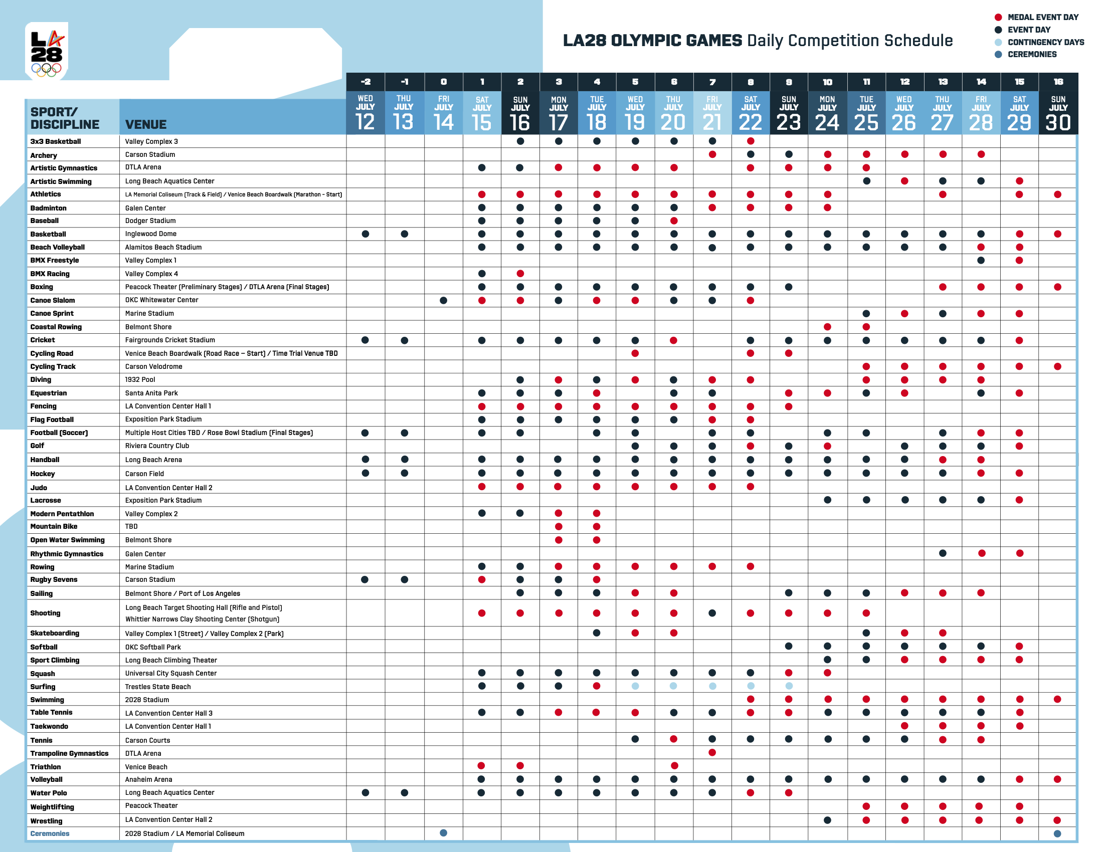 Olympic Schedule – LA 2028