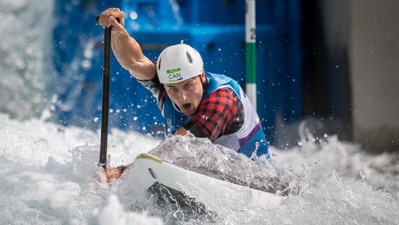 Team Canada’s Cameron Smedley races down the course during the qualifying round of canoe slalom (C1) at White Water Stadium, Deodoro Park, Rio de Janeiro, Brazil, Sunday August 7, 2016. COC Photo/David Jackson
