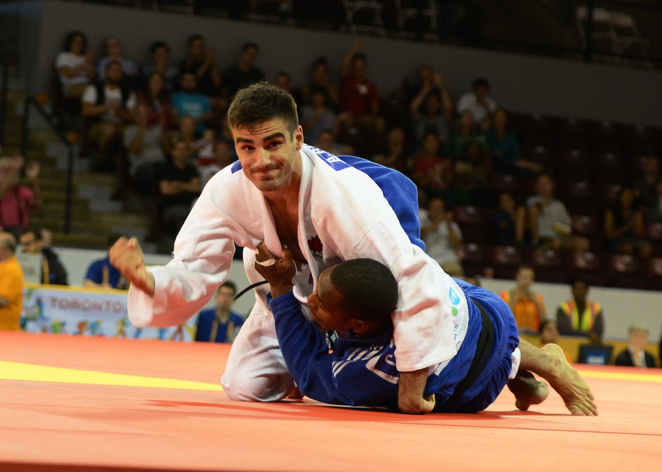 Emily Batty (right) gold medallist and Catharine Pendrel, silver medallist. Women’s mountain bike at 2015 Pan Am Games.