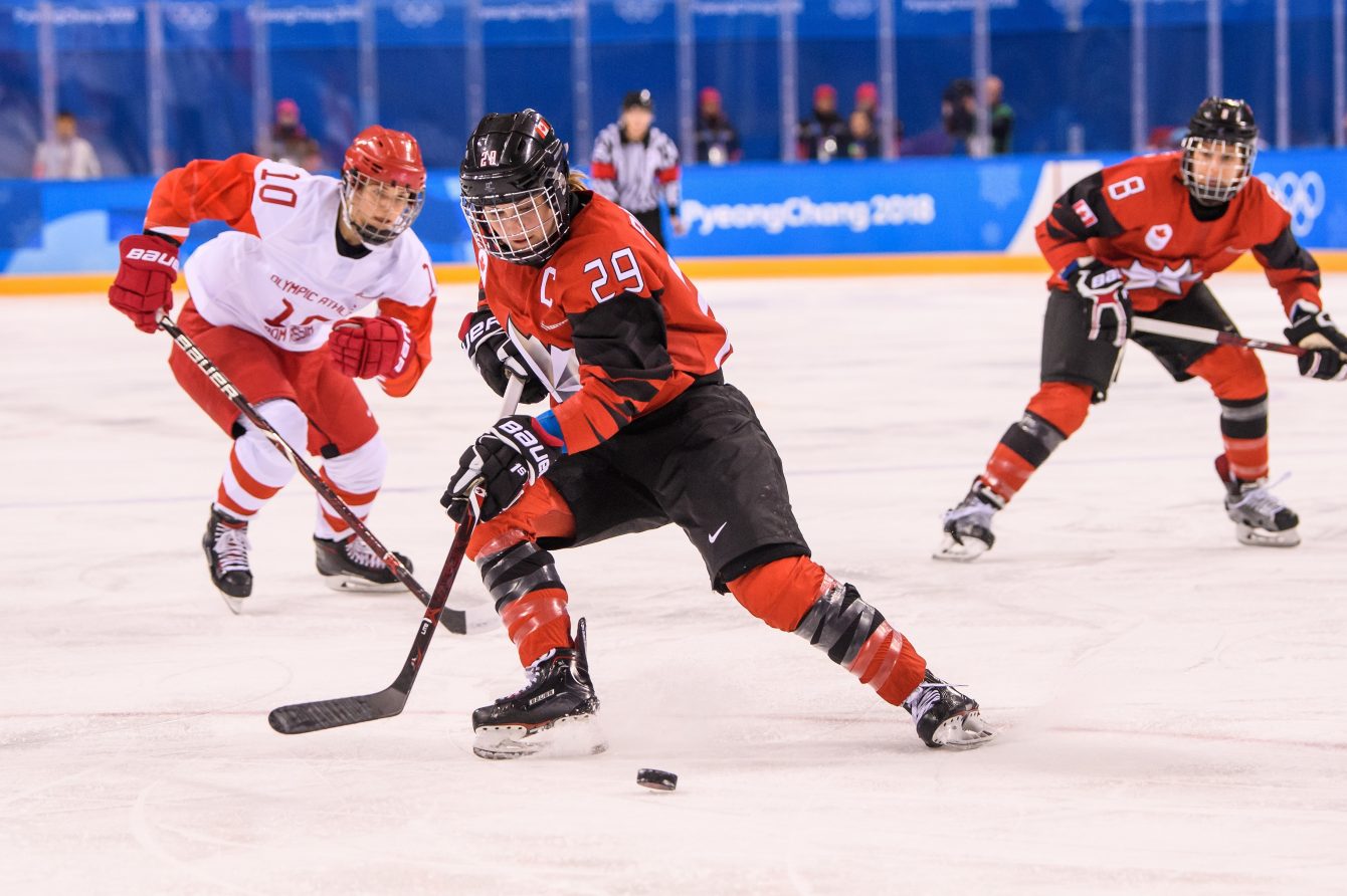 Canada forward Marie-Philip Poulin (29) in control of the puck during the Women’s Ice Hockey Preliminary Round – Group A game Canada against Russia at the PyeongChang 2018 Winter Olympic Games at Kwandong Hockey Centre on February 11, 2018 in Gangneung, South Korea(Photo by Vincent Ethier/COC)