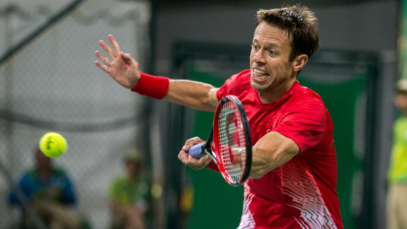 Canada’s Daniel Nestor returns a ball in men’s doubles action at Rio 2016 on August 8, 2016. (David Jackson/COC)