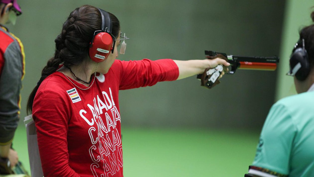 Team Canada’s Lynda Kiejko in qualifying round of air pistol shooting at Deodoro Park, Rio de Janeiro, Brazil, Sunday August 7, 2016. COC Photo/David Jackson